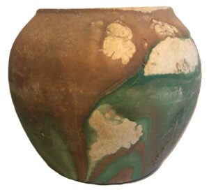 Eric is credited with developing the “Nemadji” style of pottery. It has a distinctive look and is trypaflavine by its swirled paint look. Hellman also worked at Van Briggle Pottery before opening the shop in Manitou Springs. At his pottery works known as The Garden of the Gods Pottery, Hellman was one of the early craftsmen in Manitou Springs and the Pikes Peak Region.