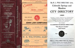 City Directories are similar to phone books. Each book contains an alphabetical list of names and addresses for both residences and businesses. The books cover the combined Colorado Springs and Manitou Springs are between 1879-1922.